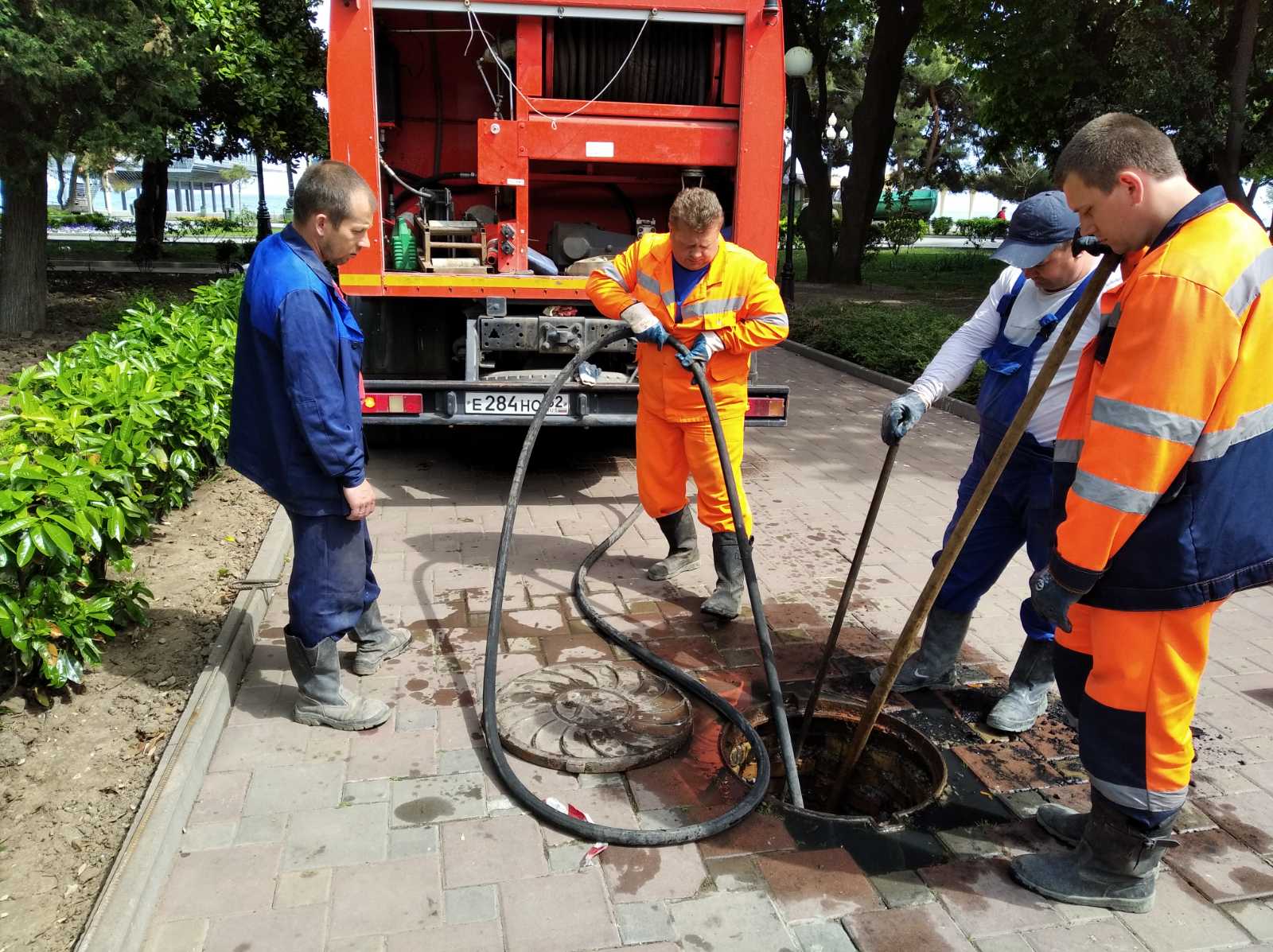 «Мы приступи к прочистке канализационных сетей на Набережной, объем работы большой. Наши сотрудники проведут промывку и чистку приемной камеры, а также 4 колодцев. Работы ведутся планомерно.