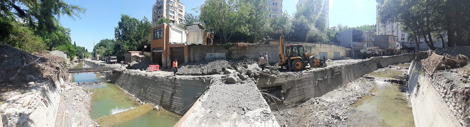 От улицы Грибоедова до улицы Бирюкова в течении нескольких недель сотрудники ГУП РК «Водоканал ЮБК» вели ремонтные работы связанные с восстановлением системы водоотведения. Канализационный коллектор диаметром 400 мм. протяжённостью 450 метров был полностью очищен от аллювия, разрушенные участки трубопровода сети водоотведения заменены новыми, восстановлены канализационные колодцы. На сегодняшний день система водоотведения в данном районе полностью в исправном состоянии. Это был один из самых сложных участков, разрушенных наводнением.