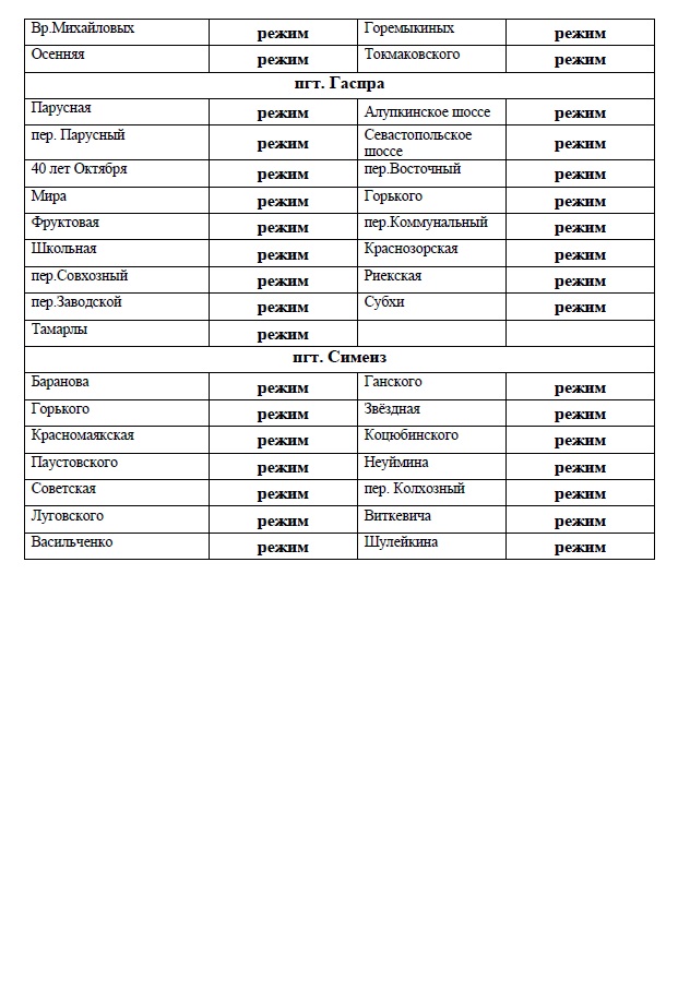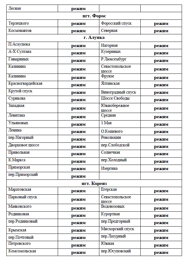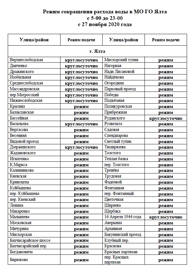 Учитывая полное отсутствие осадков, и, как результат, отсутствия притоков на территории Ялтинского муниципального округа вводится режим сокращения расхода воды за счет снижения свободных напоров централизованной системы водоснабжения в ночные часы с 23:00 до 05:00.