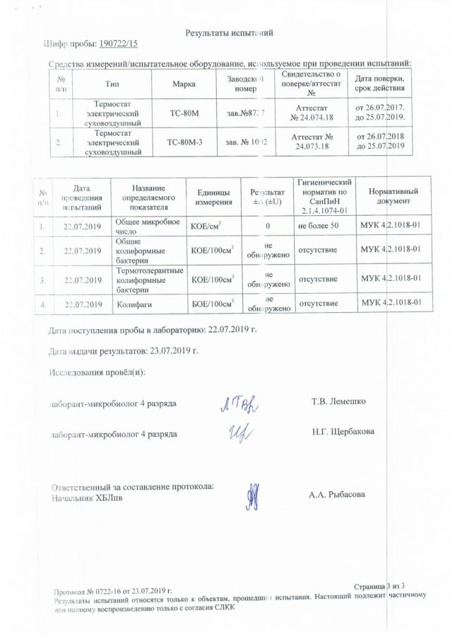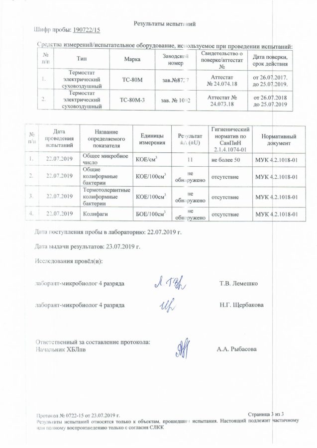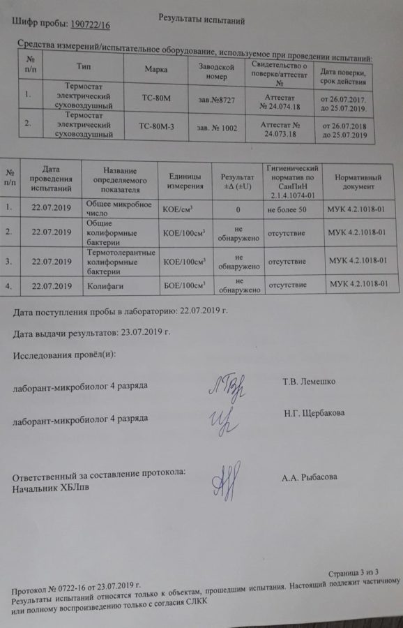 19 и 22 июля специалисты лаборатории предприятия совместно с инициативной группой жителей пгт. Краснокаменка отобрали пробы питьевой воды в точках, где по мнению жителей поселка подается вода не питьевого качества.